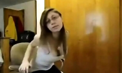Nerdy school girl from a good family drills on cam to tease her parents!