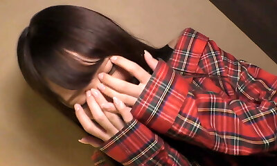 एशियाई नतालिया सोफे पर झुकता पाने के लिए मुश्किल