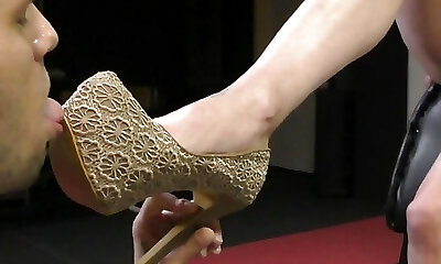 सुडौल स्वीटी के साथ एक महिलाओं का दबदबा बुत करता है कुछ चेहरा बैठे