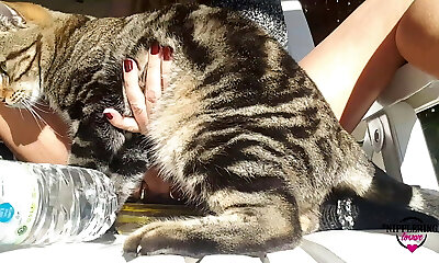 मजबूर लड़की के साथ खेलता है उसे मुंडा बिल्ली जंगल में