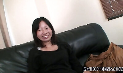 पहली टाइमर काले बालों वाली सकल फूहड़ के साथ सक्रिय था उसे बंद हो रही है पर चारपाई सोफे