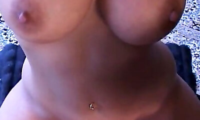 Hot slut with pierced nipples and a pierced navel loves her Sybian machine