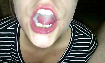 Homemade amateur blowjob, cumshot on tongue, cum guzzle - ffm threesome fledgling – MybestGF