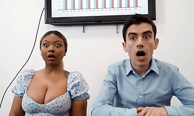 Interracial poking in the office with naughty Avery and Zoe