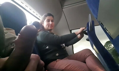 Voyeur lures Milf to Suck&Jerk his Man-meat in Bus