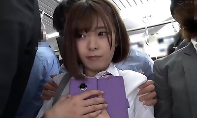 Cute slender Japanese coed gal gets violently humped in the subway train
